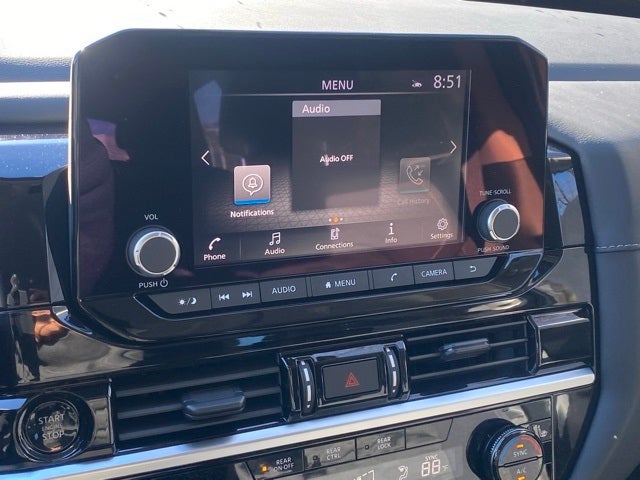 - Radio: AM/FM Audio System w/NissanConnect -inc: 6 speakers, Radio Data System (RDS), Apple CarPlay and Android Auto, 8" color display w/multi-touch control, SiriusXM satellite radio w/advanced audio features, 2 illuminated front USB connection ports (1 type A, 1 type C) for iPod interface and other compatible devices, Bluetooth® hands-free phone system and streaming audio, Speed-Sensitive Volume control (SSV), hands-free text messaging assistant and Siri Eyes-Free/Google Assistant voice recognition