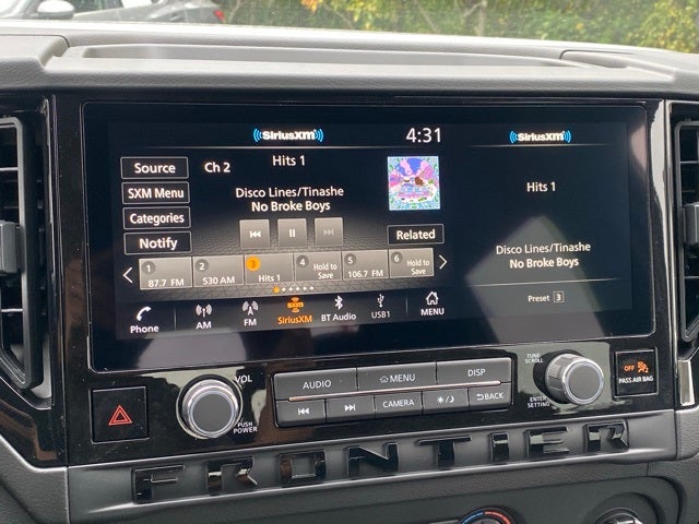 - Radio: SXM/AM/FM/AUX/USB Audio System -inc: 6 speakers, 12.3" color touch-screen display, wireless Apple CarPlay, wireless Android Auto, Bluetooth® hands-free phone system and streaming (audio or text message), voice recognition for audio features, Siri Eyes Free, NissanConnect services, Wi-Fi hotspot, 1 USB-A and 1 USB-C front ports and SiriusXM radio w/advanced audio features
