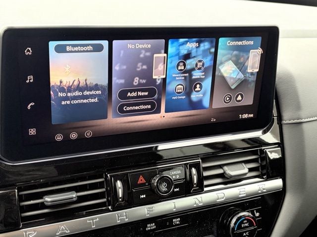 - Radio: AM/FM Audio System w/NissanConnect -inc: 6 speakers, 5G Wi-Fi hotspot, wireless Apple CarPlay and Android Auto, 12.3" center touch-screen display, SiriusXM satellite radio, 2 front USB connection (1 type C charge and data ports), Bluetooth® hands-free phone system, streaming audio and messaging and hands-free text messaging assistant