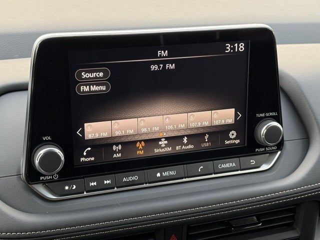 - Radio: AM/FM NissanConnect -inc: 6 speakers plus 2 tweeters, Apple CarPlay, Android Auto, 8" color touch screen display, Bluetooth®, 2 front USB type-C, Wi-Fi hotspot and NissanConnect Services powered by SiriusXM